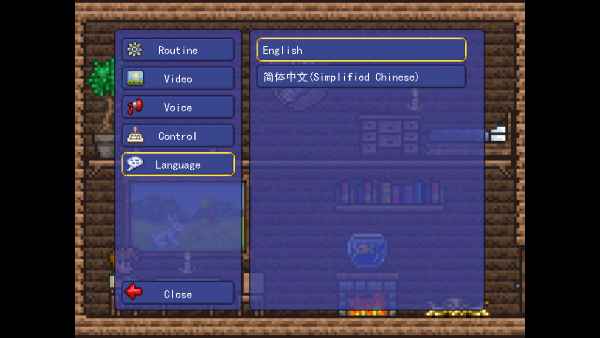 1、进入游戏后是英文界面,玩家可以点击火堆进入语言更改