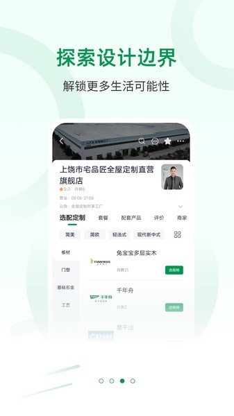 支持定制下单全屋定制材料、加工、设计、拆单、安装等服务。