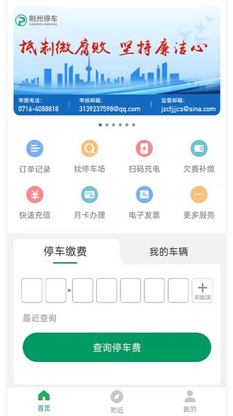 1、荆州停车app支持在线绑定车牌,绑定可以查看停车情况与订单信息。