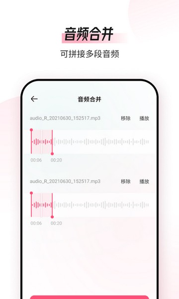 2、多个或单个音频进行任意分割, 提取,合并,一键操作即可实现专业效果。