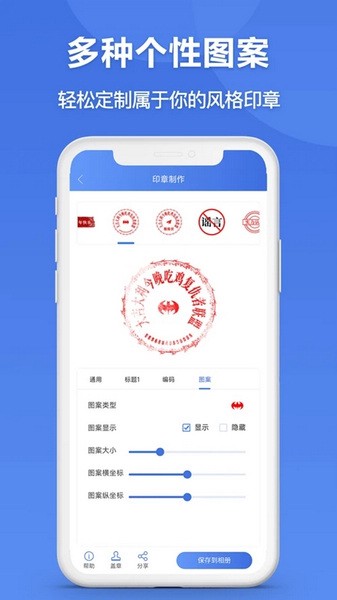 最让我觉得方便的是它的多样化功能。你可以选择方形、圆形或椭圆等多种形状,文字大小、颜色、边距都能调,还能加图案或者模糊效果,让印章看起来更真实。特别是“一键盖章”功能,直接在图片上模拟真实印章的效果,真的很省事!