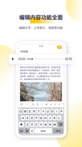 • 增强版富文本:简单但强大,日刻不限量插入照片和录音。