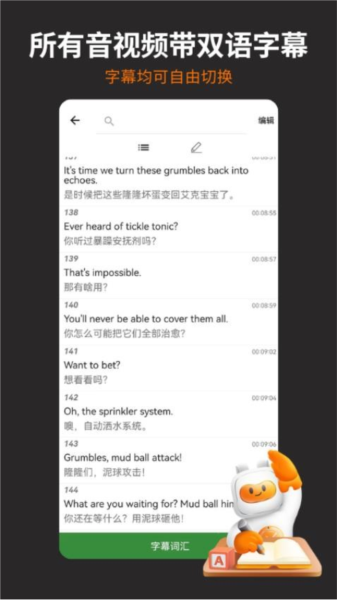 为了适应孩子们的各种学习习惯和场景需求,非常小宝app还提供了多项实用功能:如中英文字幕的切换、隐藏和导出,使得孩子们无论在家中还是旅途中,都能随时随地进行有效学习。