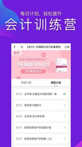 CPA注会跟我学app是一款专为注册会计师考试打造的辅导平台,软件内涵盖了注册会计师大纲解读、CPA考试题库历年真题、知识点技巧学习规划设计、网课视频直播互动精讲等,用户们可以通过看直播课程的方式更加详细高效的学习,专业的名师讲解,包含注册会计师考试六科科目,给大家提供各种有用的考试技巧和方法,让大家都可以轻松通过考试,顺利拿到证书。
