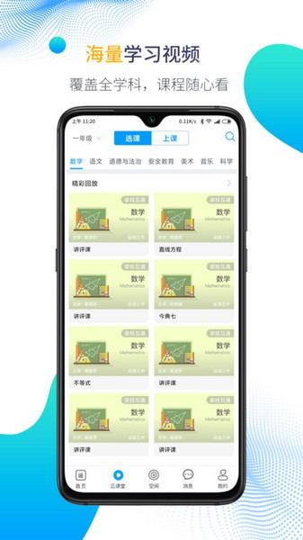 1、首先打开运城智慧教育APP,通过底部菜单栏进入云课堂页面,选择年级、科目和课程;