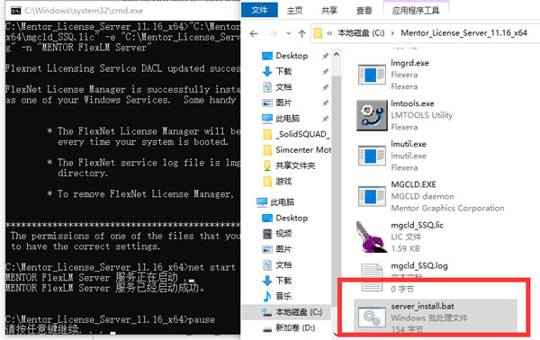 2、、以管理员身份运行“ Mentor_License_Server_11.16_x64 \ server_install.bat”,然后等待新服务“ MENTOR FlexLM Server”安装并启动