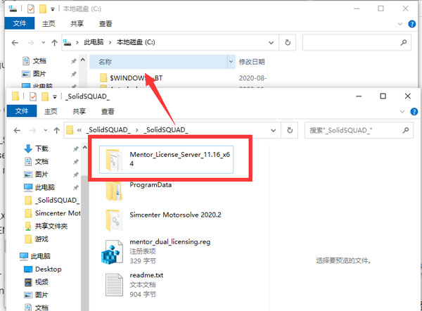 1、将Mentor_License_Server_11.16_x64文件夹复制到安装目录中,路径尽可能短,并且不包含英文字母