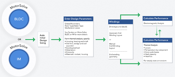 允许根据输出要求和电源电压快速确定电动机设计的初步尺寸(此阶段不涉及FEA)