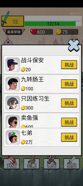 5、选择你要挑战的人物角色,如:战斗保安、九转肠王、只因练习生、卖鱼强、七弟等;