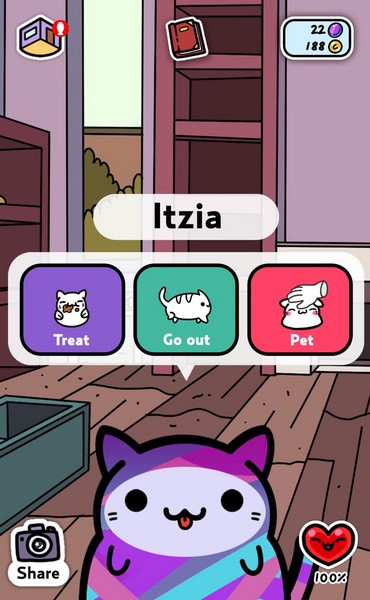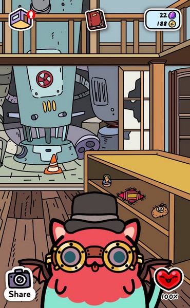 游戏的核心是通过逗猫开心来解锁更多奖励和成就。每次小猫回家后摸一摸它会增加好感度,还能获得爱心。小猫越开心,带回的东西就越多。游戏的画风很萌,背景音乐也很治愈,加上各种有趣的装饰和收集元素,让整个体验非常丰富。