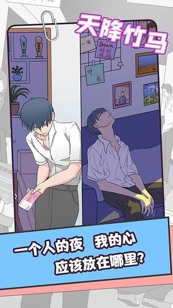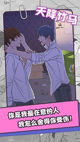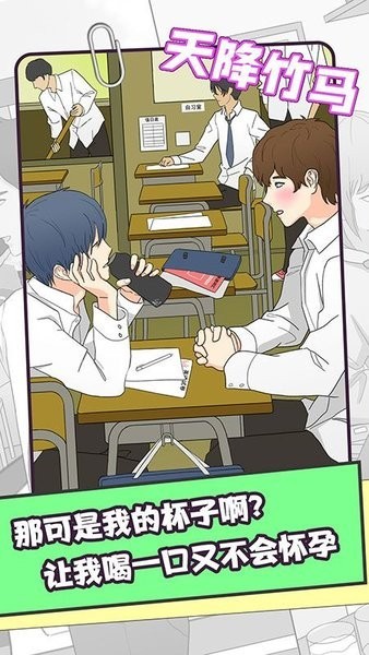 天降竹马破解版无限体力最新版是一款漫画风格的乙女基腐向剧情游戏。在这款游戏中玩家的视角将跟随两位男主角一起,从高中相识并互表心意到意外分离,经历种种后再续前缘。游戏的画风十分的不错,并且设置了许多交互玩法内容,让玩家能够更好地代入到剧情中,帮助一方去攻略另一方。本页面提供免广告的破解版安装包。