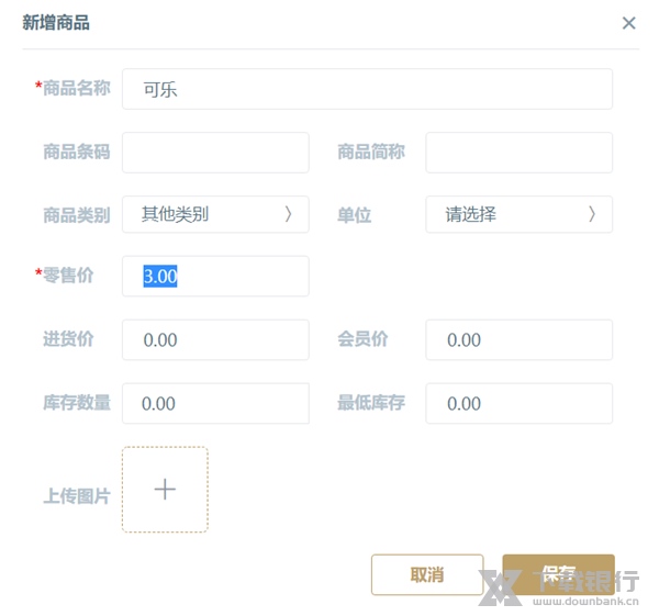 3、在里面输入你想要的加入的商品名、价格、种类、进货价、库存等等。最后点击保存