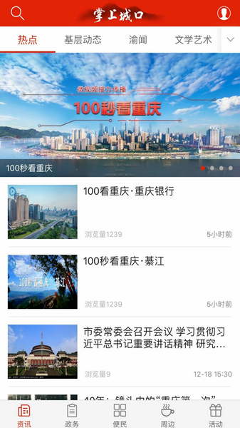 掌上城口app是专为城口用户打造的新闻资讯平台。用户既可以在此阅读新闻文字,还能以视频形式动态化的了解新闻报道,不仅有着小视频,实时直播视频也有,在手机端就不会错过每天的新闻直播。用户还可以通过掌上城口了解政务信息,通过相应的政务栏目进行意见反映参与政务管理,还能提供新闻线索和信息,或者是了解周边服务等。平台偶尔还会举办线下福利活动等等,用户还能在平台上随时随地了解到本地新闻和城口周边旅游,美食等资讯,非常好用。