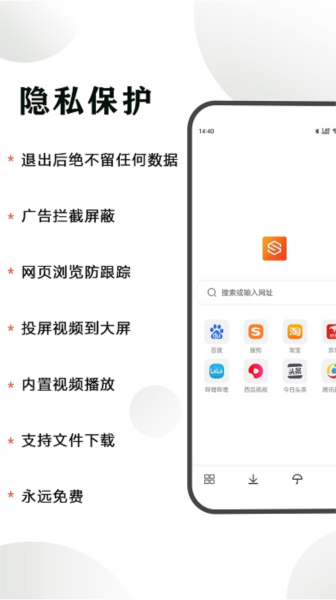 隐身浏览器是由成都宏蝶科技有限公司开发的一款手机浏览器应用,专为安卓设备设计。它功能强大,特别注重用户隐私和安全保护,内存占用小,运行流畅,不会出现闪退或卡顿的情况。这款浏览器提供多种实用功能,比如强大的广告拦截、快速下载器和视频支持,帮助用户在浏览网页时避免被跟踪或受到广告干扰。