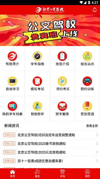 5、预约学车时间,驾校信息通知,系统信息等及时推送。