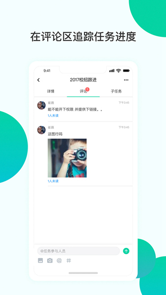 1、轻松高效帮助你管理任务、随时随地参与评论;
