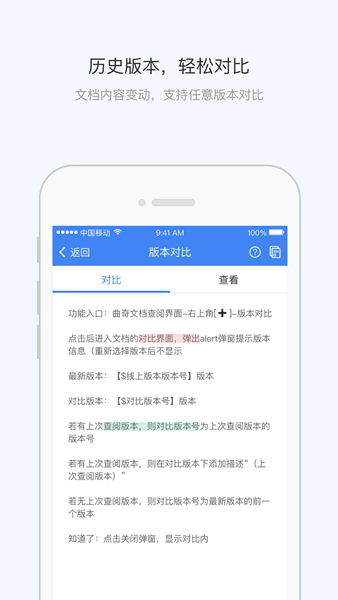 【版本对比】文档内容修改后您不需要全篇阅读寻找修改部分,系统将自动标注新文档和旧文档的差异