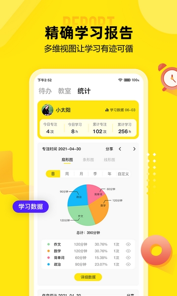 2、习惯养成,借助计时学习功能可以帮助用户提高自制力坚持自主学习;