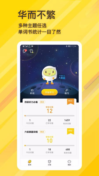 4、极简的设计风格,超质感的背景和主题,让背单词成为一件优雅愉悦的事;