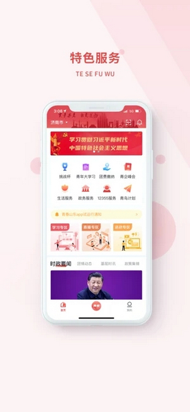 青春山东app是一款专为山东当地的共青团团员使用的团组织功能办理软件。山东团员们可以在这款软件上办理有关自己的团员身份信息转出入、处理自己的个人信息问题,也可在线预约团事务办理服务,支持团课学习等,功能齐全,一款软件处理所有事情。同时,这款软件会同步更新最新的政策消息,用户可以通过这款软件来关注时事政治,了解国家大事,知晓国际变动,同时也会有对上层政策的最新解读报告,各种学习会和报告会,提高团员的思想觉悟,学习最新最先进的知识。并且,时不时会有当地团组织的各类社会活动可以报名参与,为社会大家庭贡献自己的一份力量。除此之外,这款软件还提供社会招聘信息查询服务,用户可在这里关注山东当地的人才市场信息,在其中寻找自己满意的工作,若是想创业这里也有相关的扶持政策可以填写信息报名参与,为山东的社会建设添一分力。