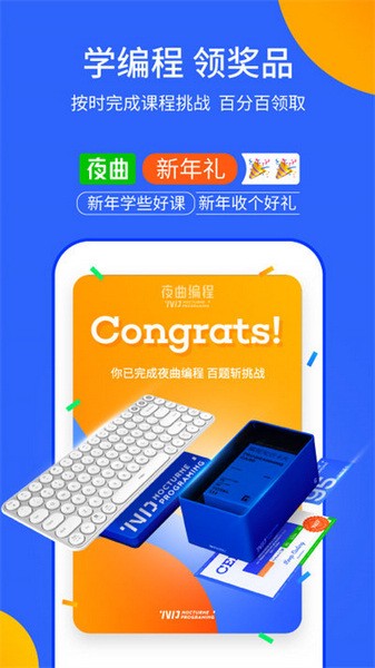 特色奖励机制-完成学习挑战可获得蓝牙键盘和结课证书等精美礼品。