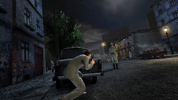 从选择角色开始我们就被一股浓浓的谍战气息所包围,克格勃和中情局,冷战两大对立面的对抗还是让人有点小激动的。不过进入正式画面后,我们还是对游戏的容量大小有了更深刻的认识,粗糙的边角以及模糊的人物服装贴图,如果不是在昏暗的场景之下,暴露出来的问题也许还会更多。不过考虑到游戏的客户端大小以及整体建模的三维场景,我们对游戏的画面也确实无法再提更多要求。值得庆幸的是,本作的动作设计还是很连贯的,快速地收拉以及切换武器都不会有不舒服的感觉,操控反馈也不错,对于玩家的预期也算可以交差了。