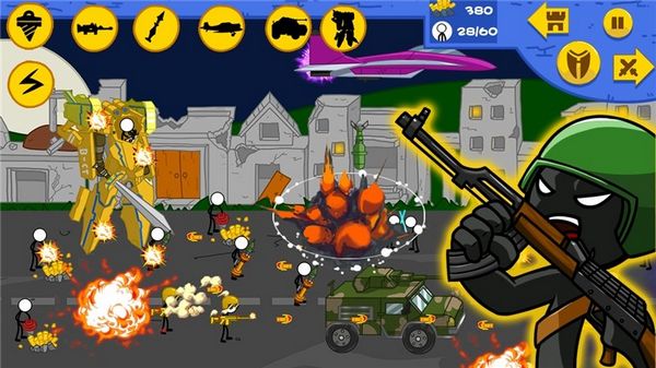 简约复古的画风:游戏采用卡通及复古风格构造,带来全新的火柴人大战体验。