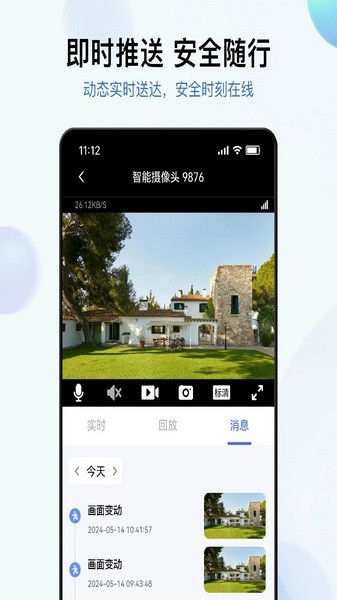 2、实时监控视频: 连接设备后,用户可以直接在应用中查看监控视频的实时画面内容,保持对家庭安全的关注。