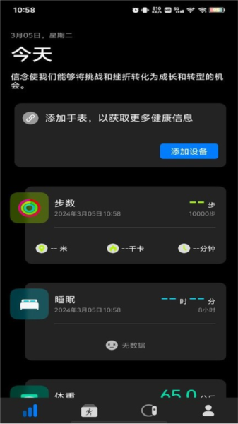 3、同步手环、手表中捕获到的健康信息,即可查看每日运动、睡眠等信息。