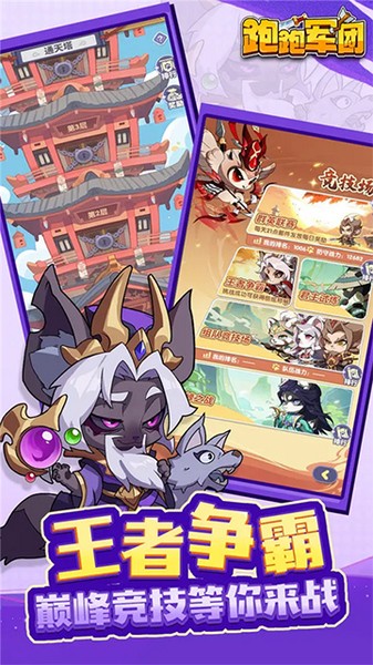 跑跑军团是一款带有肉鸽元素的放置卡牌类型的手机策略游戏。在这款游戏中玩家可以上阵不同的角色来组建阵容,这些角色都是动物化后的三国人物,与众不同的形象让角色看起来更加的可爱。此外,游戏的阵容搭配也是有讲究的,不同阵营势力和类型的武将拥有的技能特性也不同,需要合理搭配才能让武将发挥出应有的实力。此外,玩家在对局内可以获得角色卡牌来让角色升级进化。