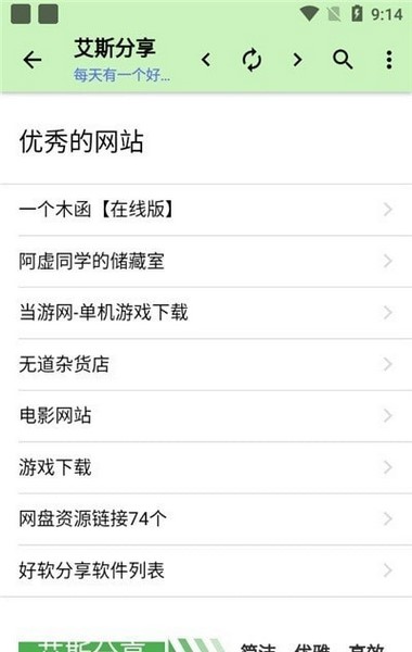 艾斯分享是一款专注资源分享的手机应用,将丰富的优质应用一网打尽。在这里,用户可以轻松浏览已分类的游戏、视频软件、音乐应用等,更有海量精选网站推荐,真正做到授人以渔,让资源寻找变得轻而易举。简约而不简单的界面设计,让体验无广告打扰,全程免费享受。