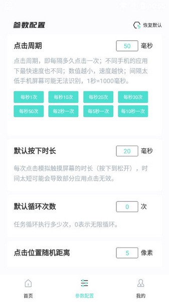 自动连点,解放双手;帮助广大安卓用户解放双手,实现短时间内快手连续点击加速,轻松设置点击频率