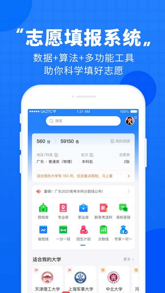 覆盖全国各大高校,985/211/双一流高校一网打尽,查大学、分数、专业、招生简章、招生计划一站式服务。