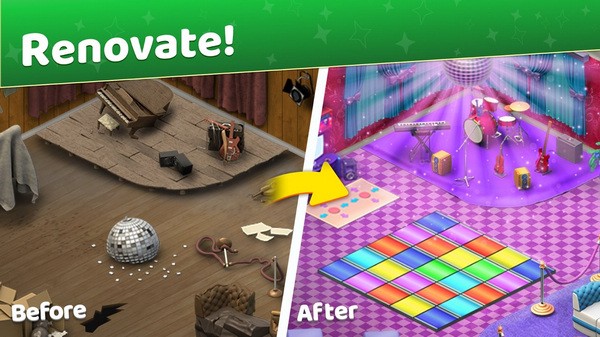 消除匹配与设计游戏是一款将消除的元素和消除完成进行了一个有机的结合,在消除匹配与设计手游中是时候将破旧的房屋进行整修一番,想要让你的房子焕然一新吗?那就发挥你的创意让房间增添一些色彩,将那些已经破旧的家具快速的清理,在消除匹配与设计游戏里你可以决定整个房屋的装修风格。