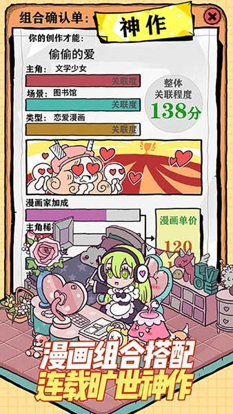 释放脑洞,尝试不同组合创作漫画,追求高分评价。