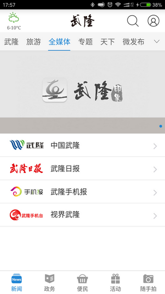 武隆印象app是一款专门为武隆的用户准备的本地新闻资讯阅览和生活服务软件,由武隆县委县政府主办,武隆报社承办,是基于智能手机的移动应用程序。用户可以通过该软件随时了解更多本地新闻,政策信息,客户端以武隆资讯服务为基础,整合新闻、政务、旅游、便民、问政、活动等内容,为用户提供优质、便捷、权威的服务。软件还支持旅游人文信息了解,旅游指南,衣食住行,还支持生活缴费和查询功能,随时爆料,政务服务等。武隆印象重视服务对象的体验与交互,降低了用户服务门槛,提高了政府的公信度和影响力,致力打造武隆公众手掌上的政府名片、随身携带的服务手册。