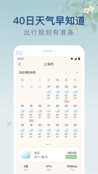4、15天预报:详细预报天气状态,温度、风向、空气质量等,四季变化提前准备