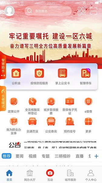 e三明app是一款专门为三明市市民开发的网上便民服务平台,软件内为广大用户们提供了网上办事、政民互动、资讯服务、资料共享四大功能,帮助当地的市民们可以查询各种当地的新闻资讯,还能在线办理各种各样的业务,拥有这款软件后就再也不用排队取号了,省时省力。而且e三明还依托12345服务平台,与数字城管、综治网格、河长制、生态环保、公安非警务110等系统平台对接,有任何事情大家都可以通过该软件来向政府反应咨询,提出建议。