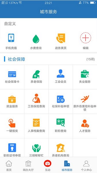 提供市民医保、社保、公积金、生活账单查询缴费,在交通出行、医疗教育、环境气象等方面提供便民服务(根据各项服务接口开发进度安排,逐步开通)。本次试运行首先开通医疗、养老、生育保险查询、中考成绩查询、燃气查询、汽车购票等服务。