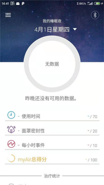 每天记录使用时间、面罩密封和每小时事件的统计数据,供您在每次睡眠后查看。