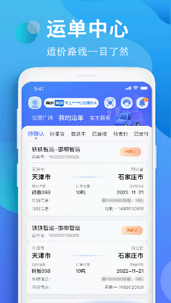 订单记录,接收的订单信息还会时刻保存到铁铁智运软件,用户能够轻易的查看到每个订单详情