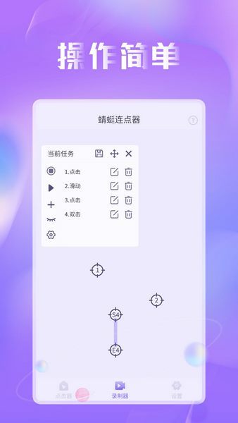 蜻蜓连点器是一款手机自动点击工具,可以实现大量的点击方案,自定义起来也非常方便,让你可以快速设置出自己需要的方案来完成各种点击任务。而且它还是免root即可使用的,仅需少量权限就可以使用,适用大部分的机型。此外还具备了录制的功能,可以将用户的操作录制下来进行模仿,而我们则可以通过进一步的修改来使其达到完美的地步。