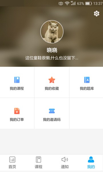 5、点击我的,你可以查看我的课程、我的收藏、我的题库、我的订单和我的邀请码