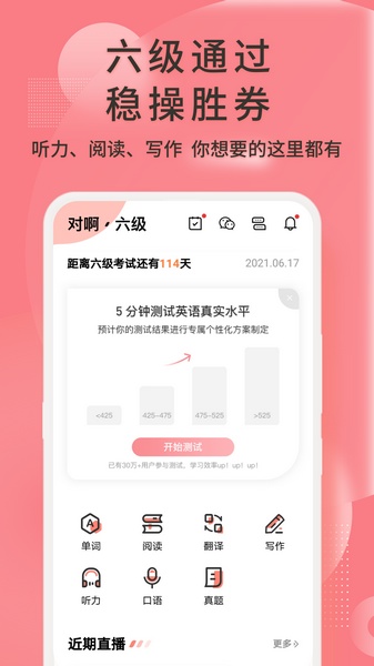 真题题库+摸底测试+智能学习,环环相扣,帮你轻松过六级