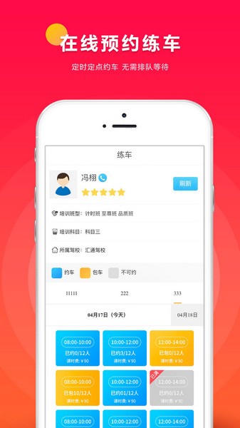 3、多种班型,能满足所有用户的练车需求,可自行选择班型练车;