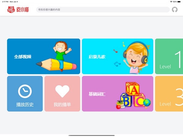1、皮小猫从认知层次和语言难度等维度将英语动画和视频分为4个Level