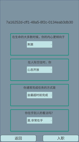 2、新手第一次玩,点击入职,填写入职材料