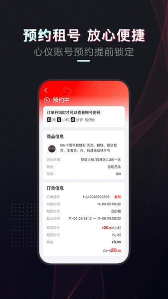 4.全品类的游戏覆盖——提供当下热门游戏(王者、lol、和平精英等)、火爆新游的账号出租