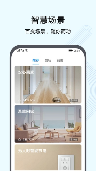华为智能家居安卓版是一款手机智能设备app,该软件是华为官方连接应用,能一键发现所有设备,并进行多样化自定义配置,将家庭家居智能化轻松实现。app还是重要的交互系统,用户能在手机中快速查看到设备状态,检测环境信息,可以说是华为智能家居设备必备应用。
