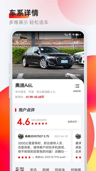 最新的全量汽车参数配置、报价、图库、点评、销量等信息